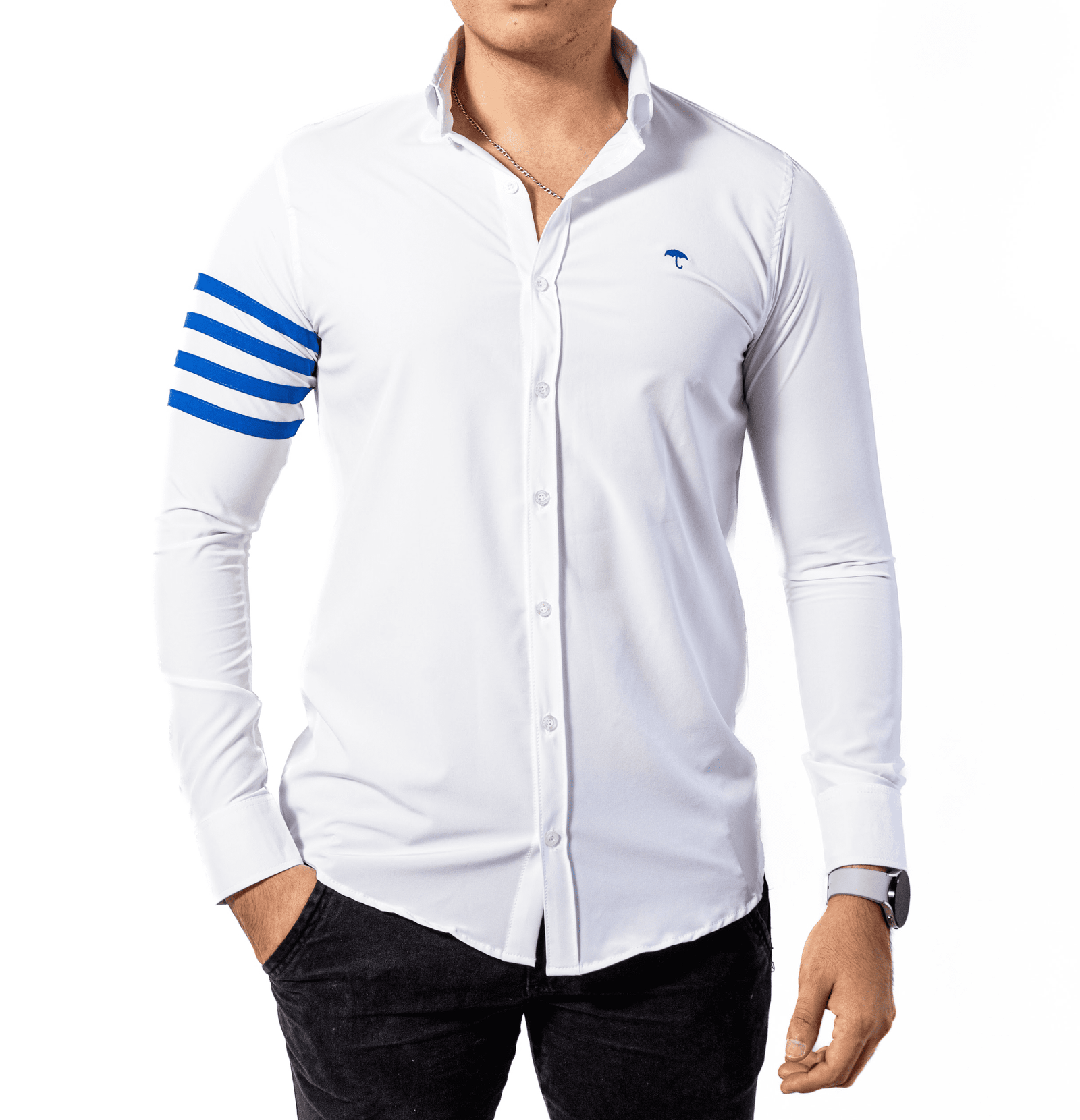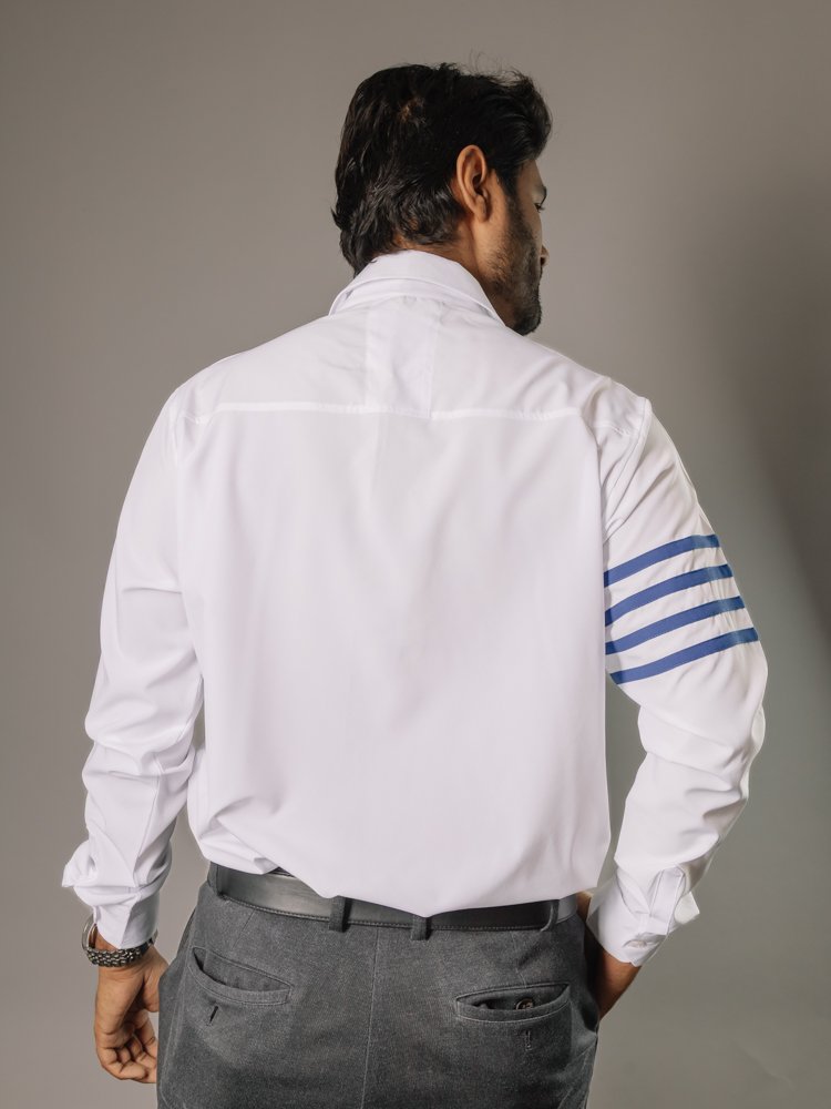 Camisa para Caballero Casual Slim Fit Blanca Lisa Franjas Azules.