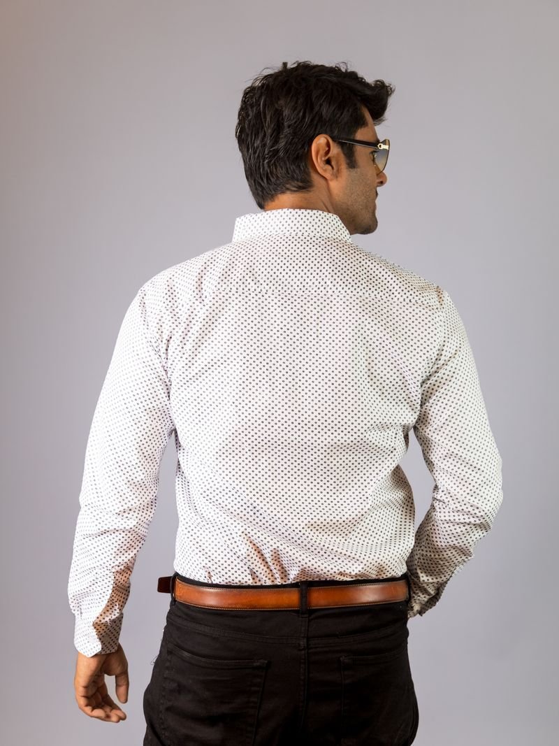 Camisa para Caballero Casual Blanca Mini Circulos Negros.