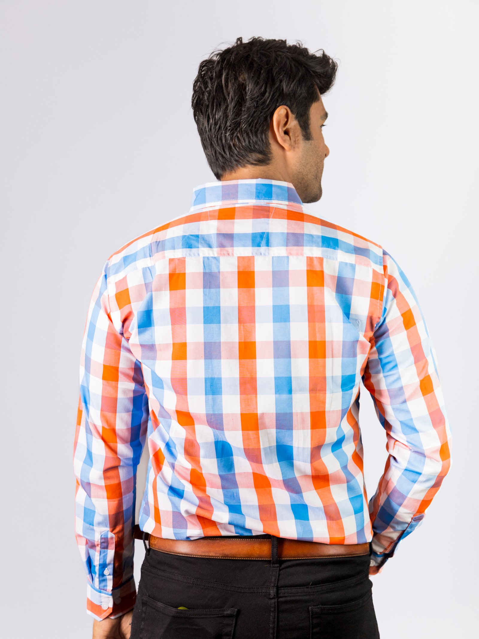 Camisa para Caballero Casual Cuadros Naranjas, Bancos, Azules.