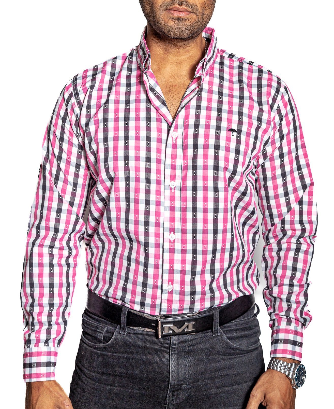 Camisa Hombre Casual Cuadros Rosas, Negros, Blancos 1