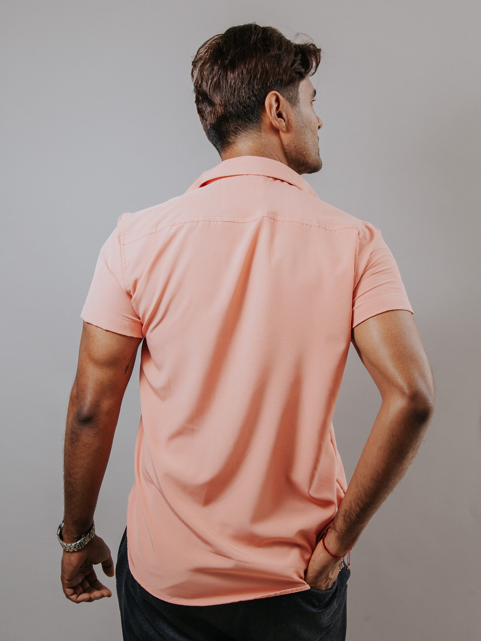 Camisa para Caballero Casual Slim Fit Rosa Palo Lisa.