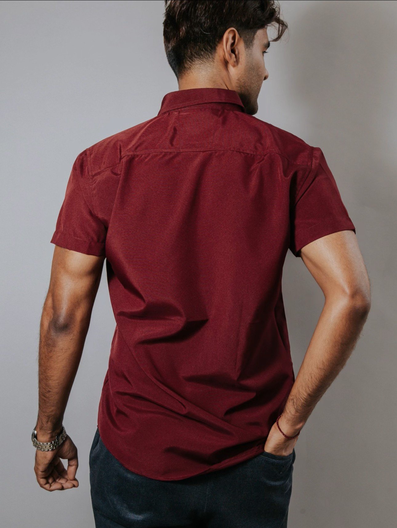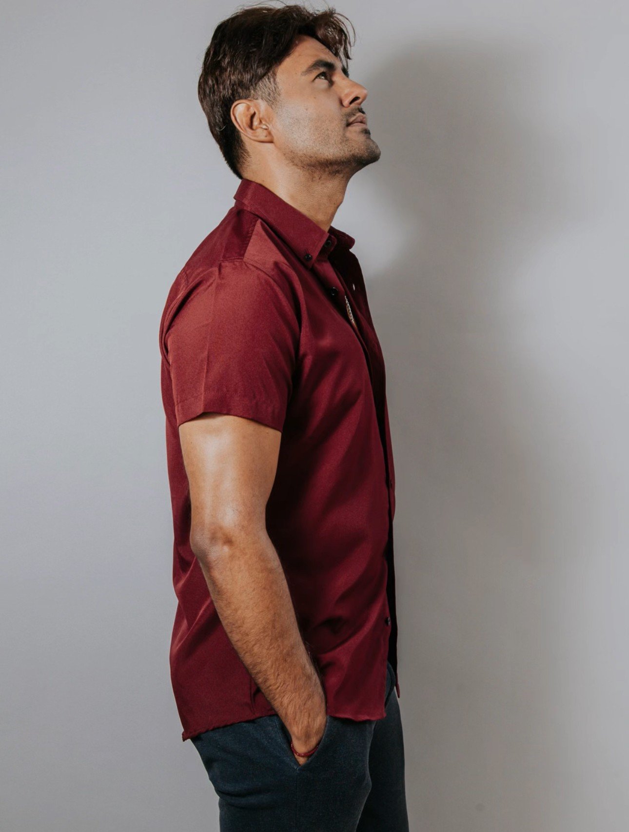 Camisa para Caballero Casual Slim Fit Vino Lisa.
