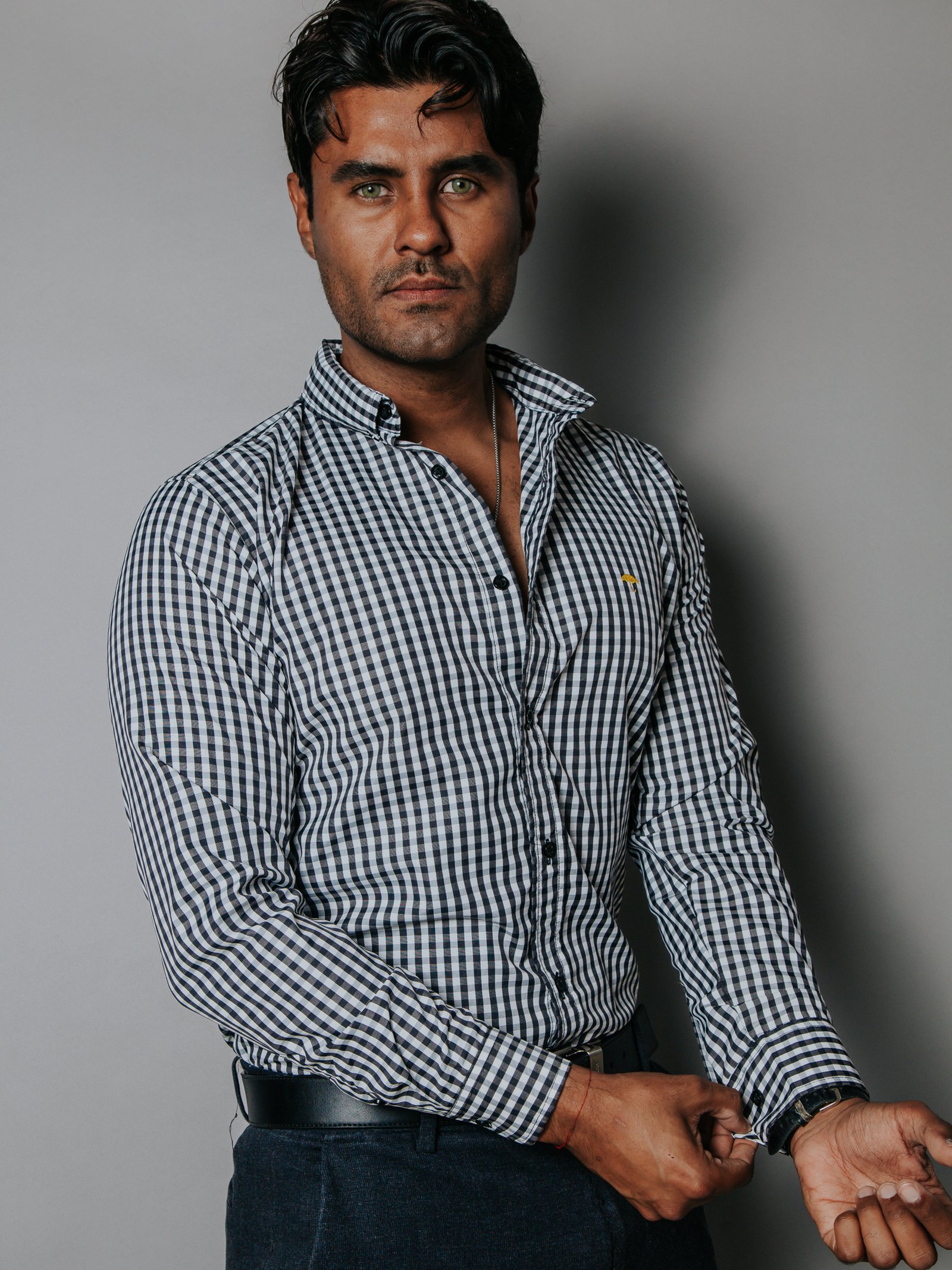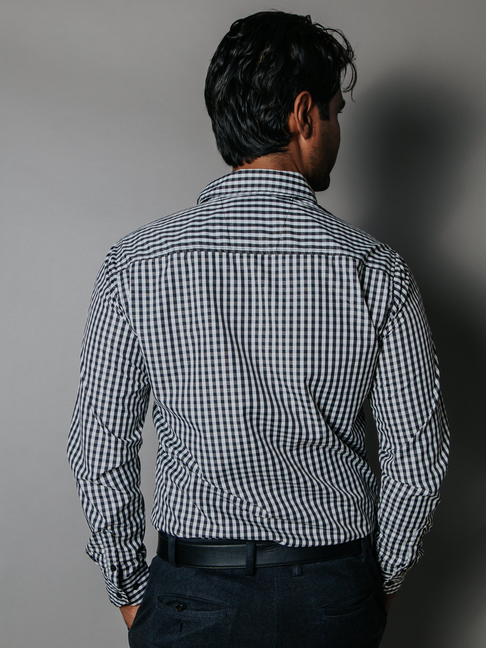 Camisa para Caballero Casual Slim Fit Mini Cuadros Negros, Blancos.