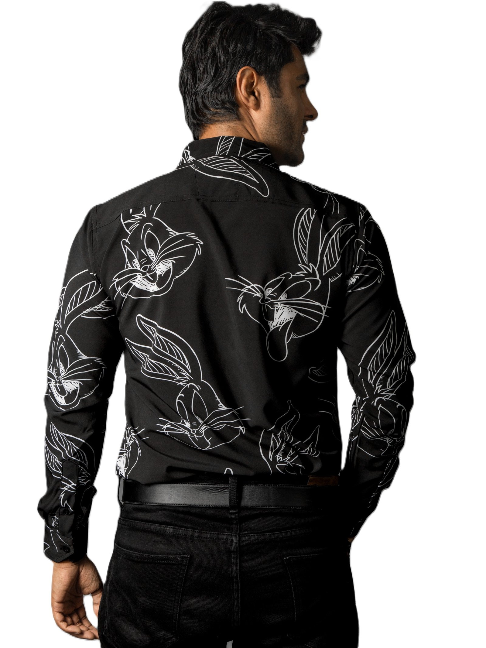 Camisa para Caballero Casual Slim Fit Negra Figuras Bugs Bunny Deluxe.
