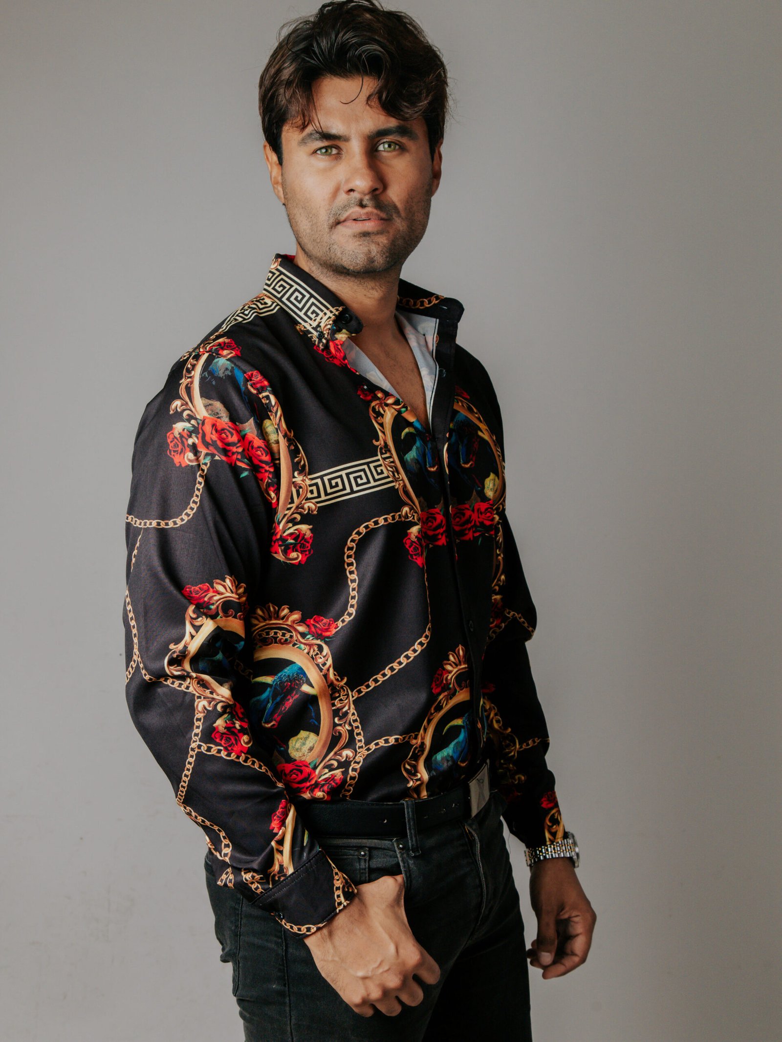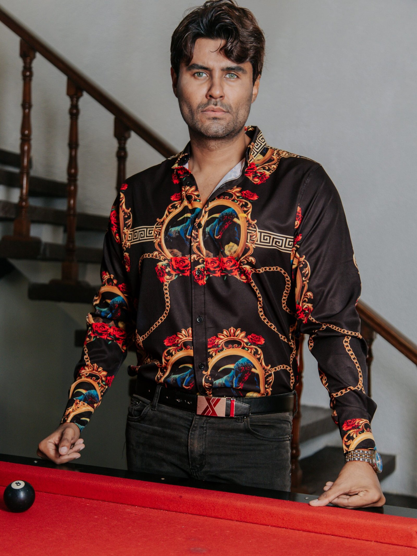 Camisa para Caballero Casual Slim Fit Negra Toros Rosas Rojas Figuras.